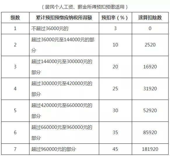 二、個(gè)人所得稅預(yù)扣稅率表