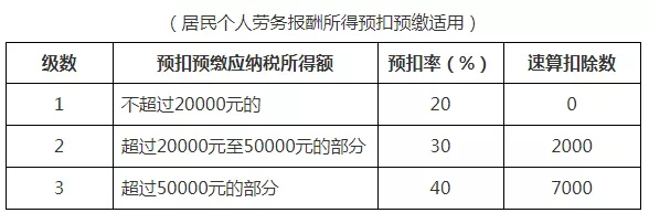居民個(gè)人勞務(wù)報(bào)酬所得預(yù)扣率表